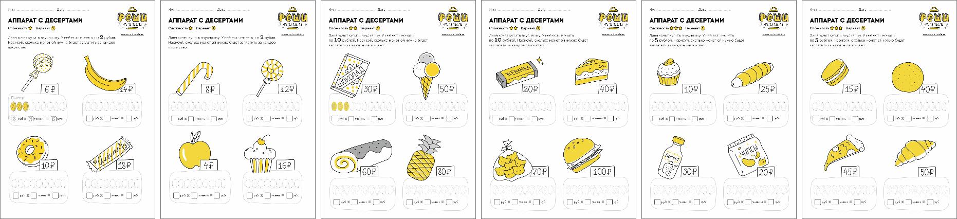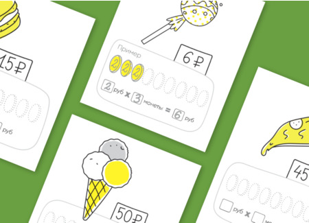 Сколько монет нужно, чтобы купить лакомство? Задание объясняет принципы умножения и деления, через серийное сложение.