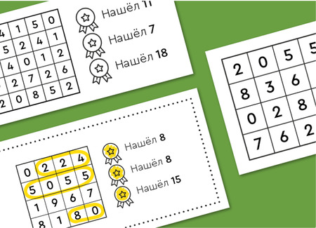 В задании нужно найти и обвести «тройки» чисел, которые в сумме составляют определённое число. Задание тренирует внимательность, быстрый счёт и знание состава чисел.