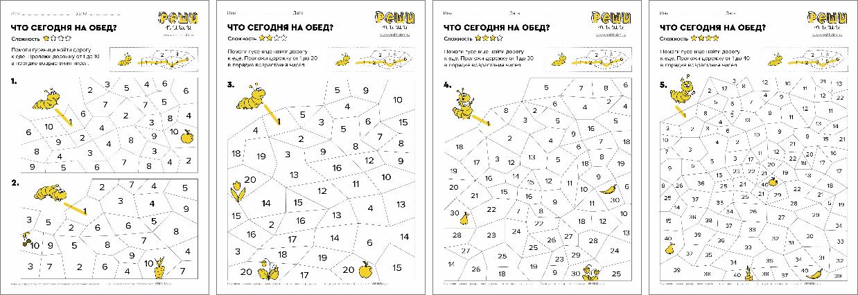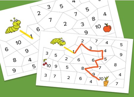 Чтобы накормить гусеницу, нужно провести её через числовой лабиринт. Задания помогут отработать навыки порядкового счёта, потренировать внимательность и логику.