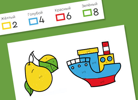 Тренируем сложение и вычитание в пределах 12. Решите пример и раскрасьте фрагмент картинки правильным цветом.