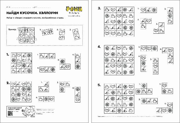 Задание тренирует внимательность, умение сравнивать и соотносить объекты между собой. Среди рисунков нужно найти и обвести заданные кусочки.