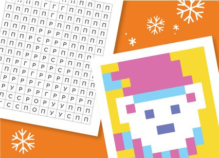Нужно быть очень внимательным, чтобы закрасить правильным цветом буквы и расшифровать новогоднюю картинку. Задание выполняется текстовыделителями!