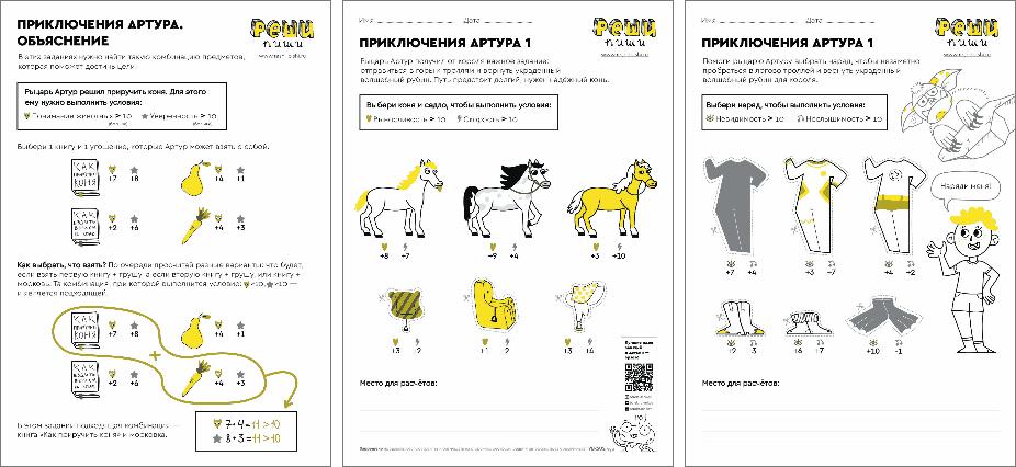 Увлекательная задача-игра на сложение и сравнение чисел. Снаряжаем рыцаря Артура в поход: выбираем коня и защитную экипировку! Мыслим стратегически и весело проводим время.