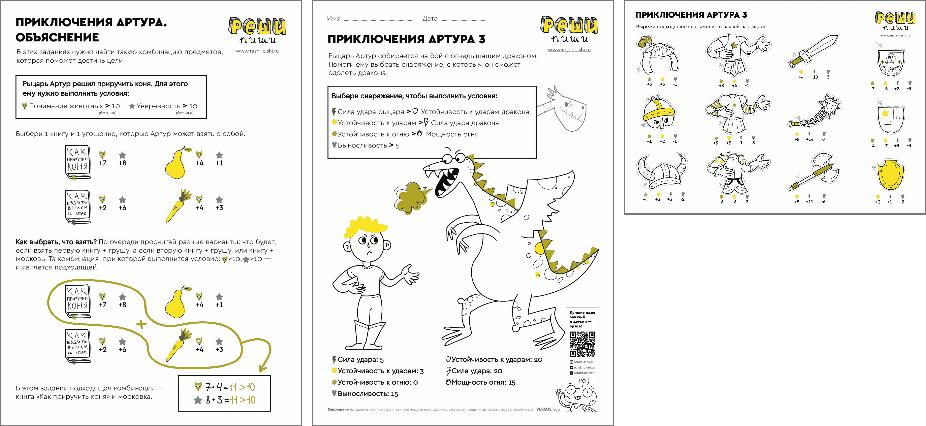 Увлекательная задача-игра на сложение и сравнение чисел. Снаряжаем рыцаря Артура в поход: выбираем коня и защитную экипировку! Мыслим стратегически и весело проводим время.