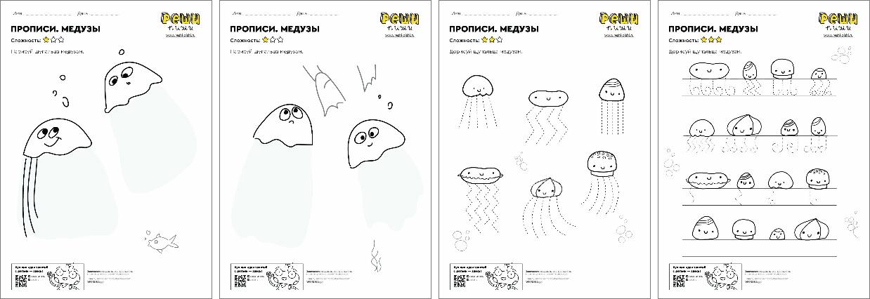 Нескучные прописи для малышей. Рисуем щупальца медузам и готовим руку к письму.