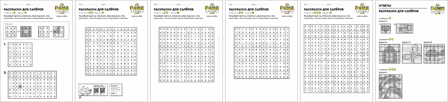 Играли в сапёров на компьютере? Мы сделали детский вариант этой логической игры. Нужно расшифровать картинку с помощью цифр-подсказок: они показывают, сколько вокруг каждой клетки закрашенных клеток.