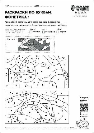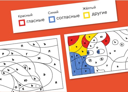Интересное сочетание тренажёра мелкой моторики и знакомства с буквами. В задании нужно расшифровать картинку. Для этого предложите ребёнку закрасить фрагменты рисунка нужным цветом: буквы подскажут, каким именно.