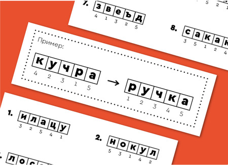 В задании нужно расположить пронумерованные буквы по порядку, чтобы получилось слово. Это задание на чтение и порядковый счёт.