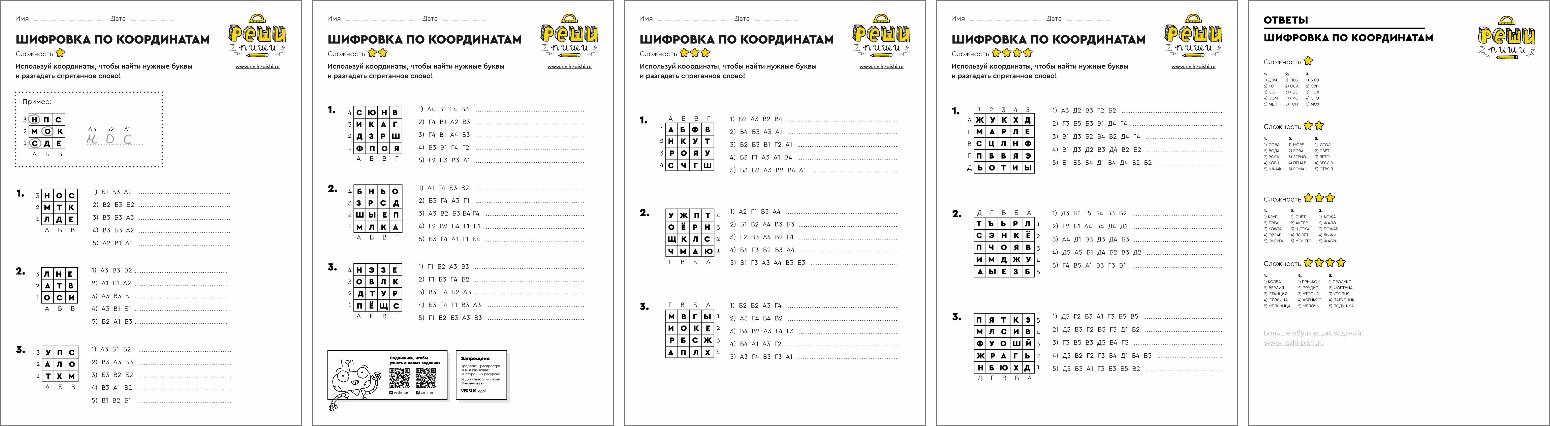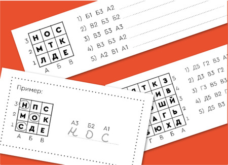 Расшифруйте слова при помощи координат. Задание тренирует чтение, письмо и умение ориентироваться в координатах.