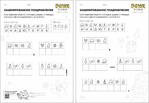 В задании нужно разгадать слова при помощи ключа к шифру и прочитать поздравления.
